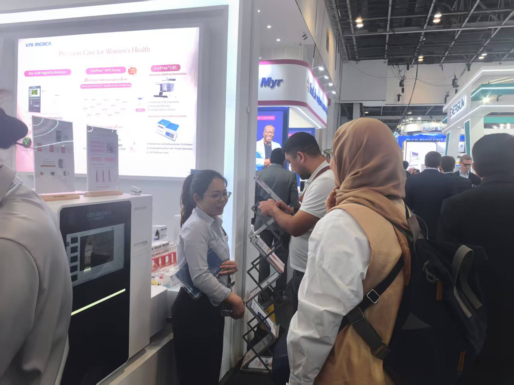 2026年WHX Labs Dubai于本月10日在迪拜世界贸易中心成功正式开始,作为专注于女性健康诊疗检测的联合医学,本次参展产品主要包含妇科阴道炎全自动荧光染色检测、领先的15种HPV E6/E7 mRNA全分型检测以及28种HPV DNA全分型检测、 液基细胞学解决方案等,从荧光形态学,分子PCR以及测序等多个维度提供全流程解决方案。开展首日,联合医学展位吸引了全球各地合作伙伴的沟通交流,为2026年海外市场的开拓打下了坚实的第一步。
