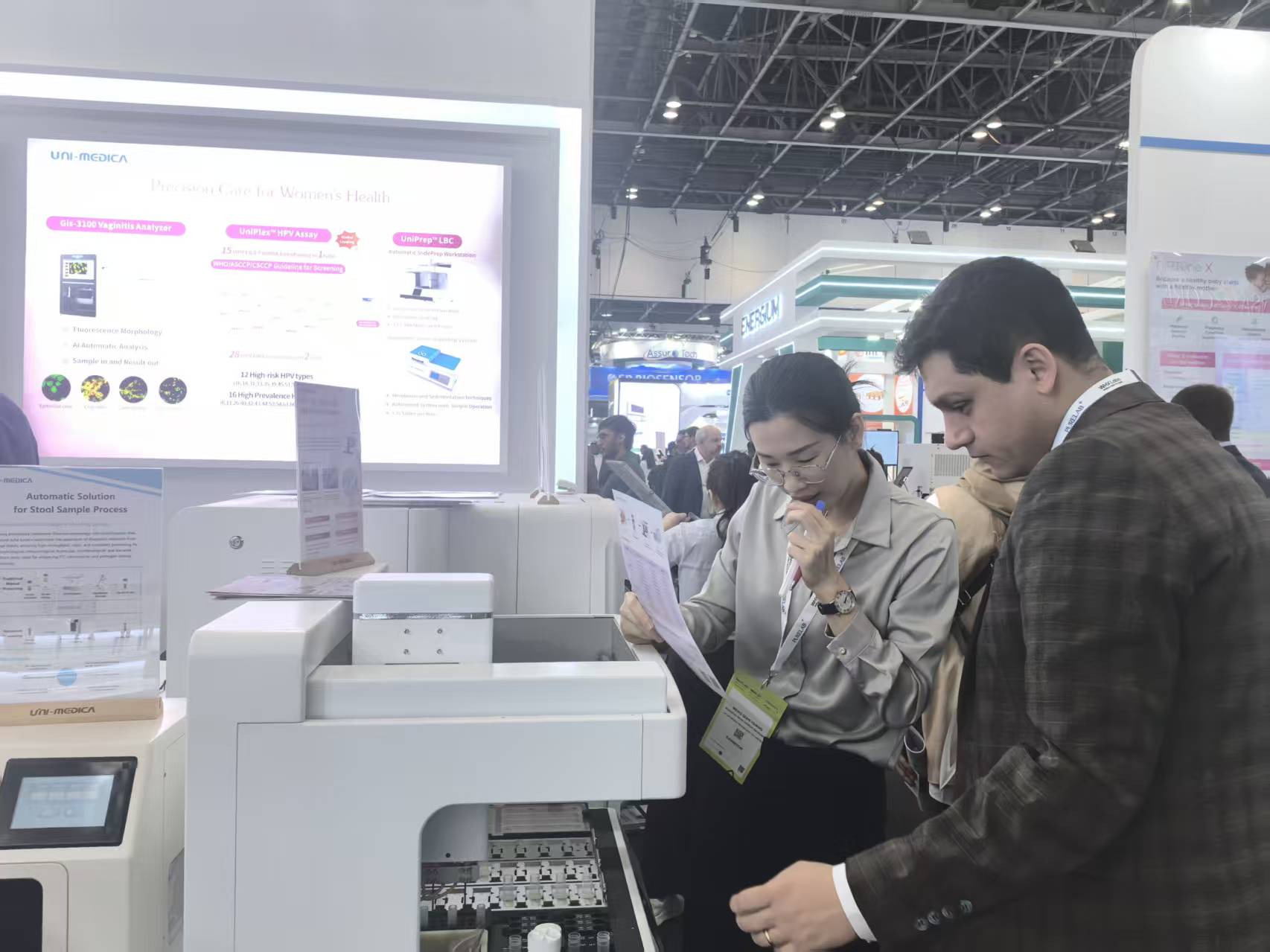 2026年WHX Labs Dubai于本月10日在迪拜世界贸易中心成功正式开始,作为专注于女性健康诊疗检测的联合医学,本次参展产品主要包含妇科阴道炎全自动荧光染色检测、领先的15种HPV E6/E7 mRNA全分型检测以及28种HPV DNA全分型检测、 液基细胞学解决方案等,从荧光形态学,分子PCR以及测序等多个维度提供全流程解决方案。开展首日,联合医学展位吸引了全球各地合作伙伴的沟通交流,为2026年海外市场的开拓打下了坚实的第一步。