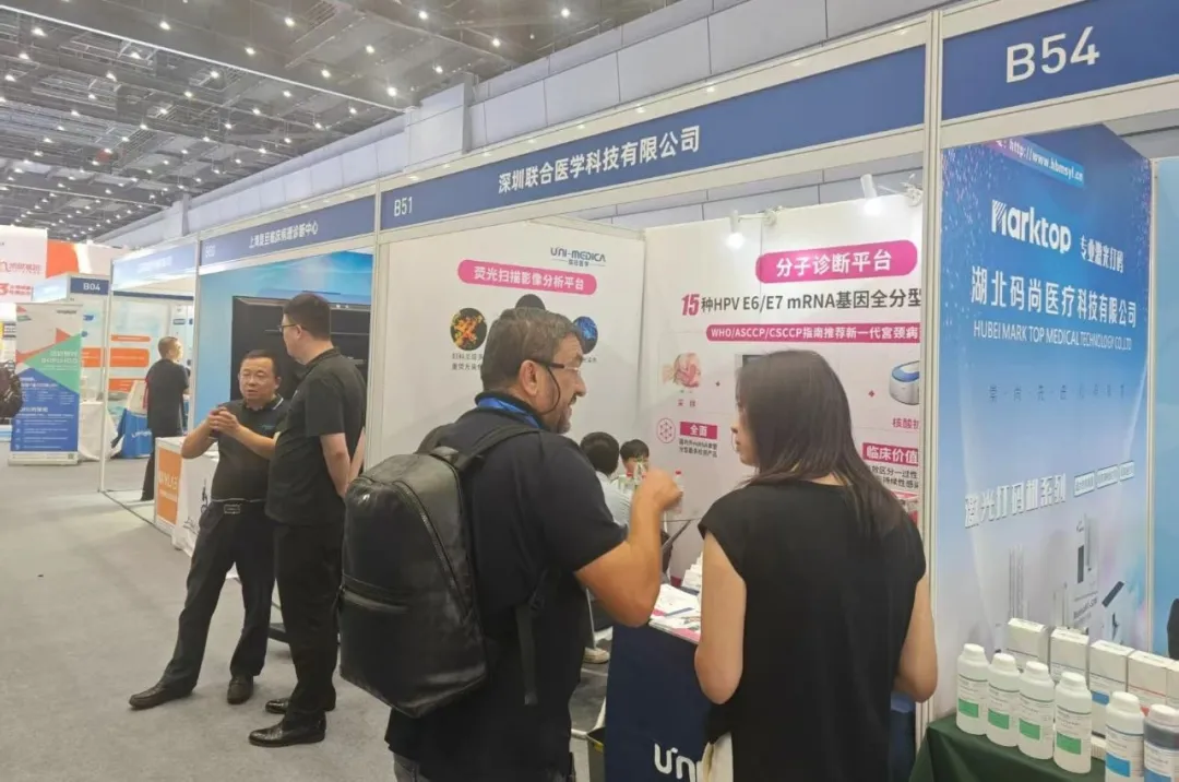 此次展会,联合医学携荧光扫描影像分析平台、基于流式细胞仪平台的检测试剂,荧光定量PCR呼吸道四联检(30分钟快检)、HPV E6/E7 mRNA基因全分型检测试剂盒(荧光PCR熔解曲线法)等产品参展,助力精准守护妇幼与生殖健康及呼吸道等传染病防控。联合医学采用新一代PCR熔解曲线技术,对WHO列出的14种高位分型和1种中国人群高发潜在高危型进行15种HPV E6/E7 mRNA单管全分型检测,检测灵敏度更高,结果自动判读,清晰直观,同时区分一过性感染与持续性感染,特异性更高,为临床提供更为准确的检测依据。