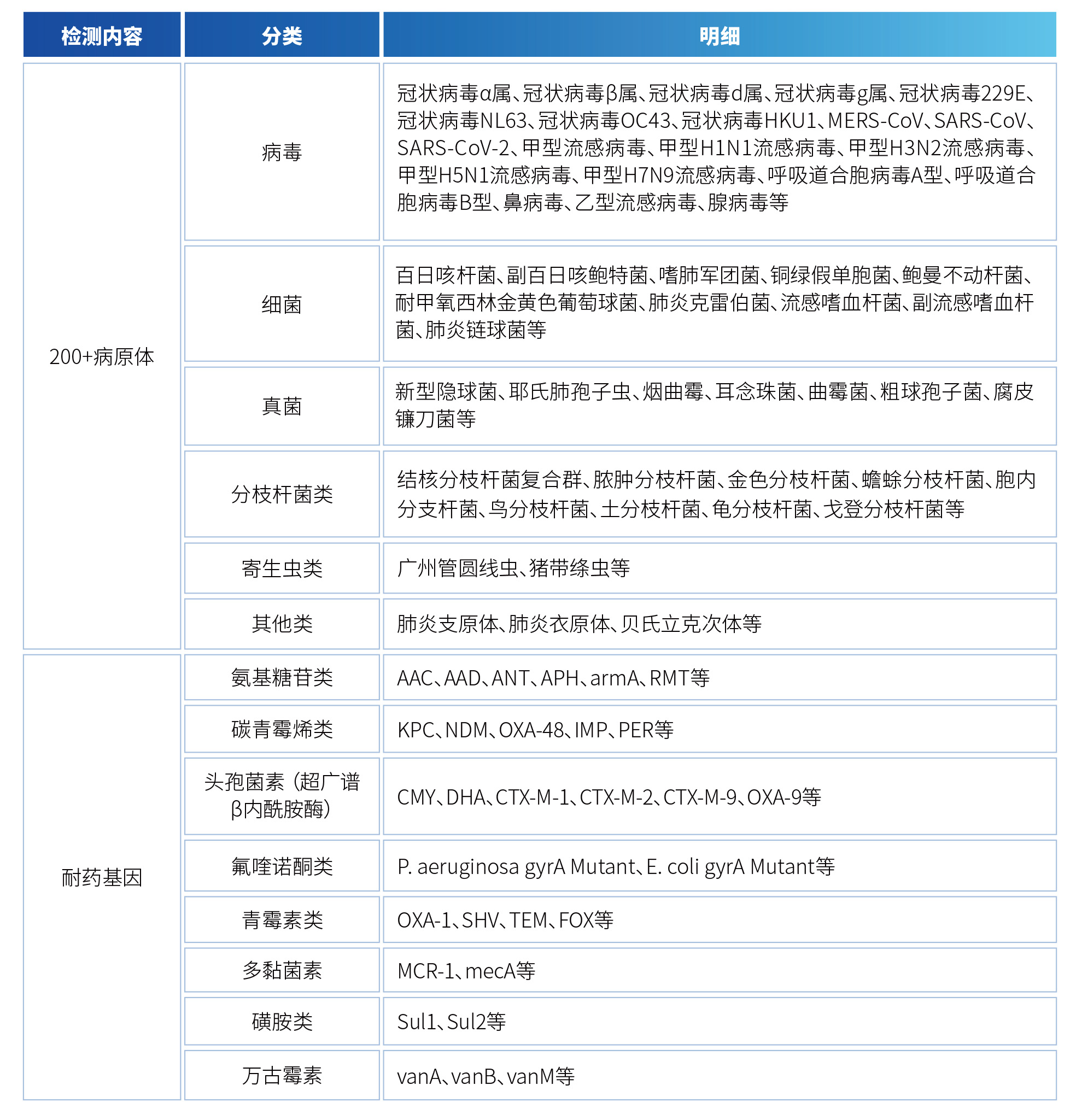 联合医学病原微生物靶向测序(tNGS),采用“All-In-One”超高重PCR扩增子捕获的专利技术和二代高通量测序技术,高精度检测样本中痕量的病原微生物核酸,不仅可快速鉴定病毒、细菌、真菌、寄生虫等多种病原微生物,还可检测多个耐药基因。
