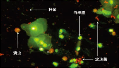 4. 独特的免疫荧光染料特异性识别滴虫。