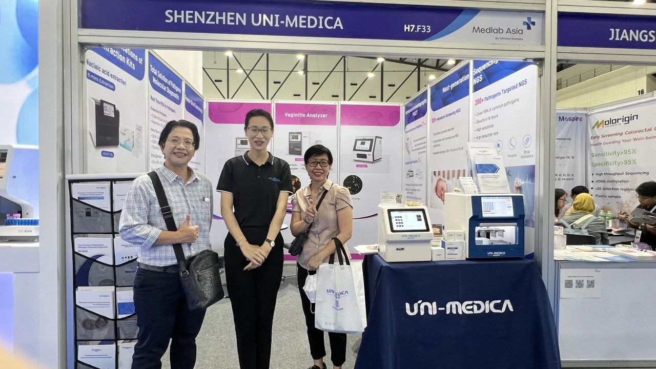 With Medlab Asia as the platform, Uni-medica brought a full line of products to the exhibition, and the series of products such as Fluorescent Quantitative PCR platform, Total Solution of Tuberculosis, High Throughput Sequencing platform, Fluorescence Staining platform and many other important products have been highly praised and recognized by customers