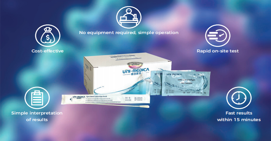 Uni-medica SARS-CoV-2 Antigen Rapid Test Kit has the advantages of convenience, rapidity, high sensitivity and specificity. Simple operation, only 15 minutes to get the test results and no equipment required.