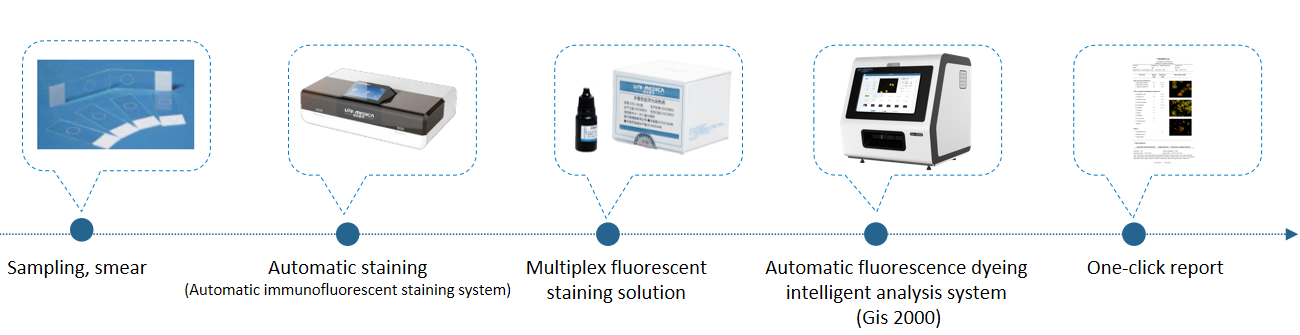 Automatic fluorescence dyeing intelligent analysis system (Gis-2000) adopts artificial intelligence technology, which can scan epithelial cells, white blood cells, red blood cells, sperm cells, lactobacillus, bacillus, gonococcus, streptococcus, fungi, spores, hyphae, clue cells, trichomonas and other tangible substances at the same time, and can perform artificial intelligence interpretation on the density, diversity and cleanliness of flora.