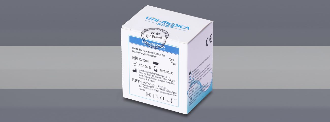 The kit is designed for the direct detection and differentiation of sexually transmitted infections by real-time PCR in urogenital/endocervical swabs and urine samples. The bacteria in the panel are: Neisseria gonorrhoeae (NG), Ureaplasma Urealyticum (UU), Mycoplasma genitalium (MG), Ureaplasma parvum (UP), Mycoplasma hominis (MH) and Trichomonas vaginalis (TV).