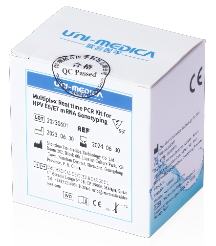 The Multiplex Real time PCR Kit for HPV and 16/18 Typing used for in vitro qualitative detecting 15 high-risk HPVs (16、18、31、 33、35、39、45、51、52、53、56、58、59、66、68) in human cervical exfoliated cells, and can identify HPV16 and 18 types, which can be used for auxiliary diagnosis of cervical cancer.