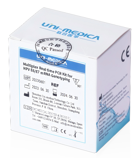 Cervical cancer is caused by the continuous overexpression of the E6/E7 oncogenes from high-risk HPV virus types. HPV E6/E7 mRNA Genotyping kit targets oncogenic activity of the HPV virus by detecting E6/E7 mRNA. HPV E6/E7 mRNA Genotyping kit are designed for a true molecular HPV screening and triage testing strategy to support risk stratification of women infected with HPV.