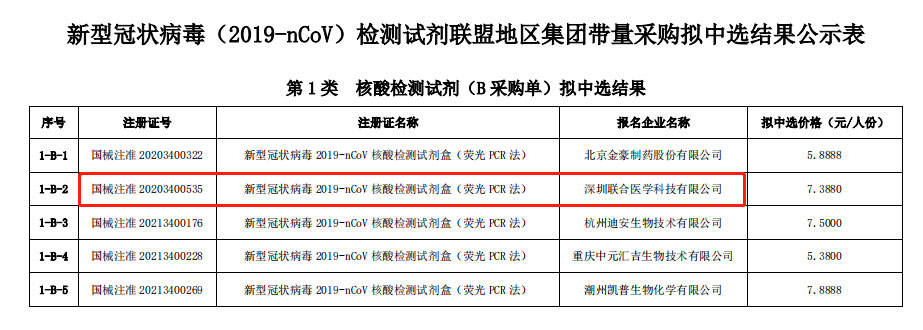 联合医学新冠核酸检测产品再次中标本次11省集中采购。